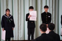 受賞披露では、2学期に活躍した部活動や各種作品等の成績を称えました。