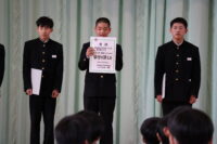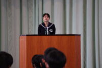 生徒意見発表では、2学期に頑張ったこと、今後の取り組みについて3名が発表しました。