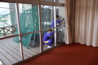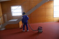 各班に分かれ、リーダーの生徒が指示を出して活動しました。下駄箱や教室の窓など、普段の清掃で手が届きにくい箇所まで綺麗にすることができました。