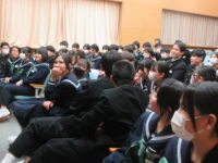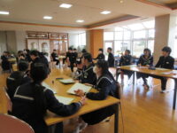 3年生では、5限目に最後の学年集会を行いました。先生が出題者となり、学年担当の先生に関するクイズをしました。先生方の意外な一面を知り、とても盛り上がりました。後半は、お世話になった先生や学年の先生方から話を聞きました。先生方からの言葉を胸に刻み、4月から始まる新生活でも生かしていってほしいと思います。また、6限目には最後の学級レクリエーションを行いました。卒業プロジェクトの担当が計画・実施しました。卒業前に、仲間とかけがえのない時間を過ごすことができました。