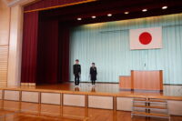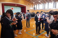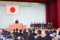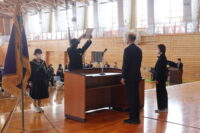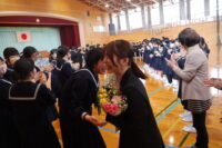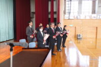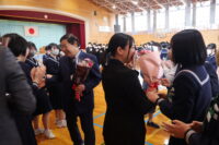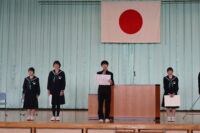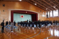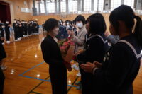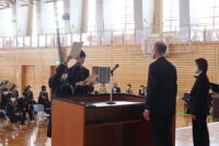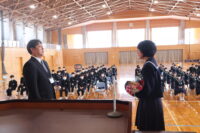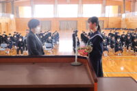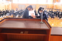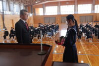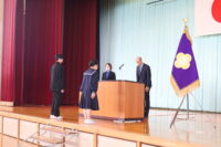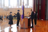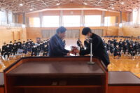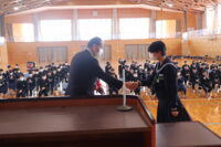 修了式では、1・2年生それぞれの代表生徒が校長先生から修了証を受け取りました。