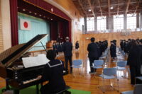 修了式等に先立ち、今年度最後となる「空を飛べるはず」を全校で合唱しました。
