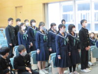 同窓会入会式・表彰式・受賞披露(3月11日) 2026年3月11日 吉江中学校 未分類 卒業式を前に、本日、同窓会入会式がありました。 今年は59名が新たに同窓会員として入会しました。 表彰式では、富山県中学校体育連盟から3名、富山県中学校文化連盟から2名、富山県善意銀行から2名、福光地域学校生徒指導連絡協議会から2名が表彰されました。 最後に3年生の受賞披露を行い、活躍を称えました。 〈同窓会入会式〉 〈表彰式〉 〈受賞披露〉
