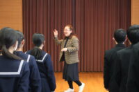 2学年:『第九』を歌おう!スペシャルレッスン① 2026年3月18日 吉江中学校 未分類 5月に行う修学旅行での「チャペル de Let’s Sing!」に向けて、今井幸代先生に合唱指導をしていただきました。12月から音楽の時間や学年の時間をつかって練習してきた『歓喜の歌』です。今井先生のご指導により、よりドイツ語らしく、より高らかに、より美しい響きで、パワー全開で歌うことができました。生徒達には大変楽しい時間となったようです。今井先生、ありがとうございました。
