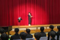 ステージ発表では、「中学生の主張」「英語弁論」を皆さんの前で堂々と発表することができました。